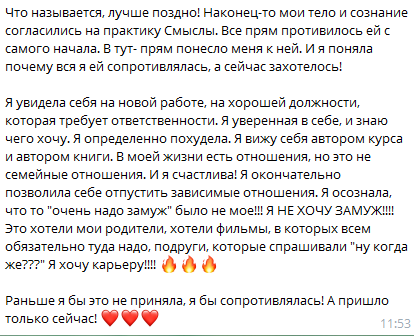 Я знаю, что у многих нет возможности или времени регулярно ходить к психологу, но проходит время, а проблема сама собой не рассасывается, а разрастается все больше. В таком случае мои онлайн-программы станут альтернативным решением для вас".